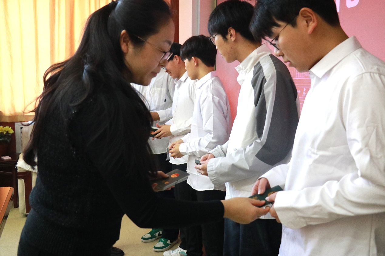 王文鑫为新团员颁发团员证