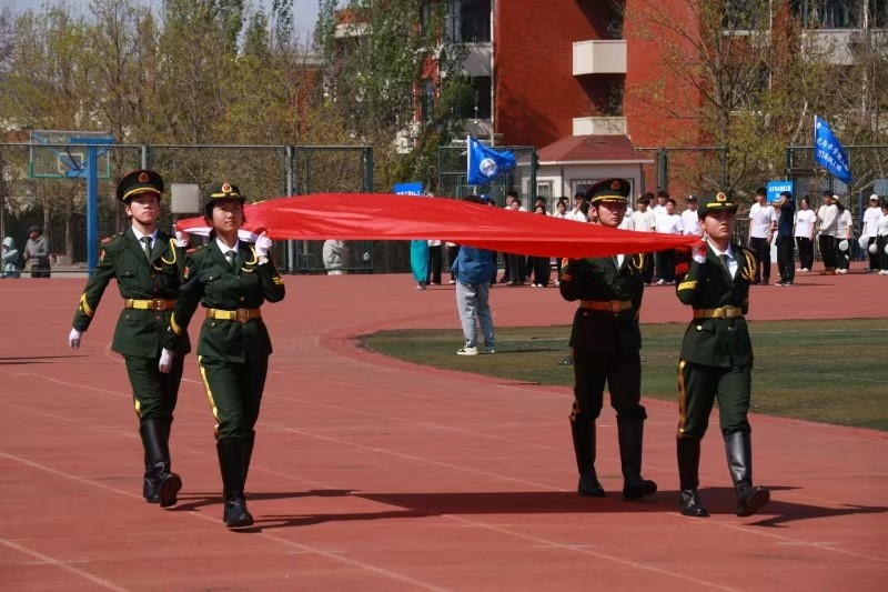 伴随激昂的《运动员进行曲》,国旗护卫队以挺拔身姿擎旗入场,在绿茵场上划出一道红色的行进线,正式拉开了本次运动会的激情序章。2024级8个班级代表方队紧随其后,他们服装统一、步伐整齐,以创意造型和响亮口号彰显地科学子积极向上的风貌。