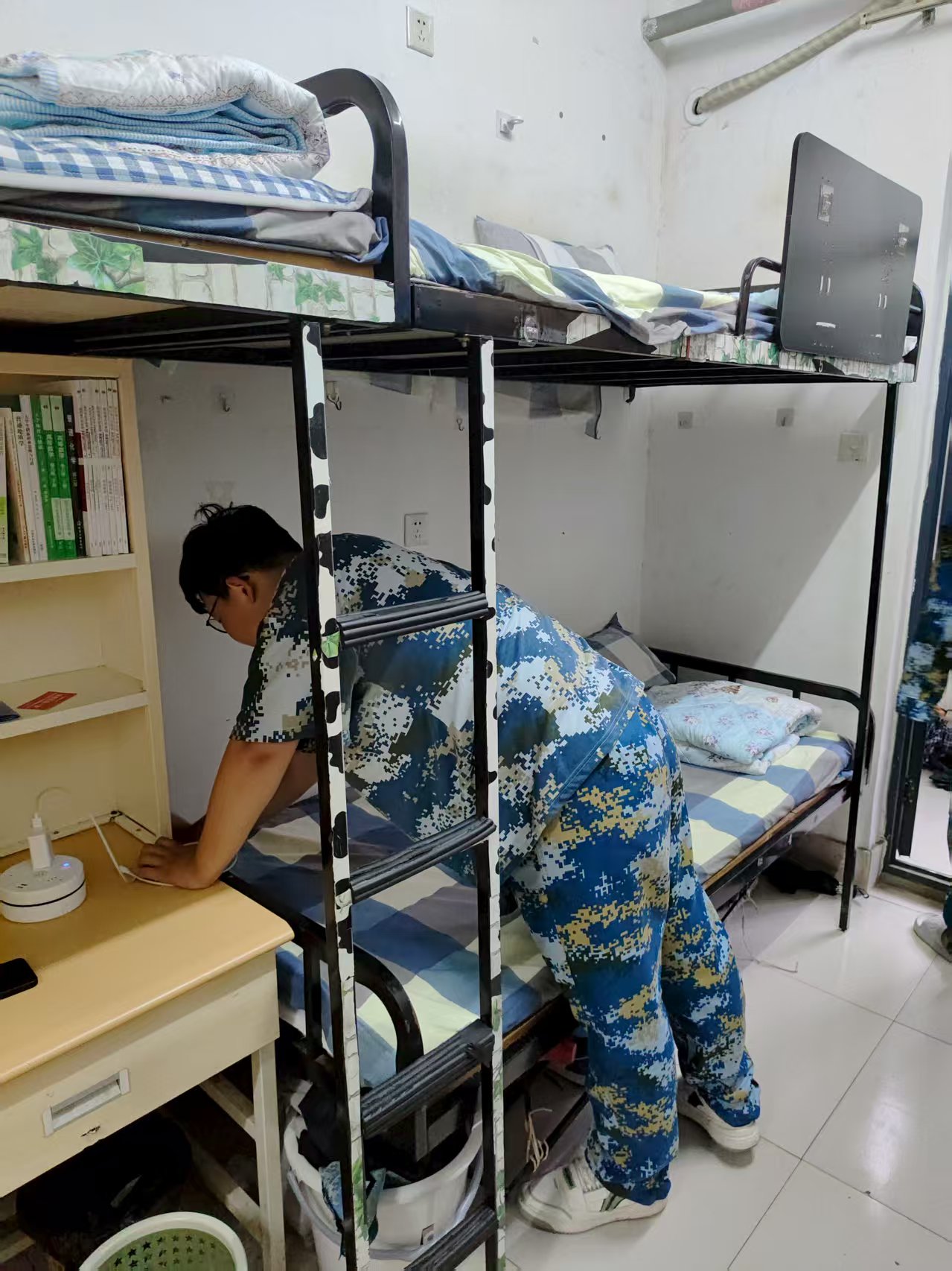 晨雾蒙蒙,细雨绵绵。9月12日,新生军训步入第5天,阴雨天气让新生们的训练按下暂停键。但他们并未停歇,在宿舍里开启了别样的“军训”——内务整理,以另一种方式磨砺意志、锤炼品格。
