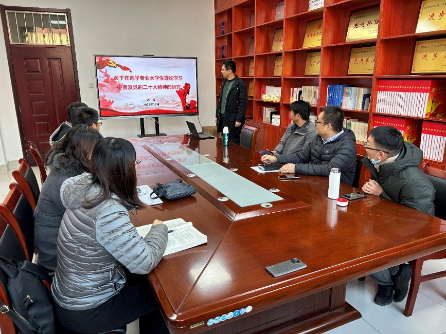 讲座结束后,参会教师围绕“如何将党的二十大精神在地学专业老员工理论学习中进行普及”展开了交流讨论,大家纷纷表示:通过学习交流,深刻认识到党的二十大精神指导教学育人的重要性,要始终坚持党建引领,以实际行动落实党的二十大精神,不断增强责任感和使命感,找准工作切入点和着力点,进一步在地学专业老员工中普及党的二十大精神,促进党的二十大精神与地学专业课程教学的深度融合,做好课程思政的大文章。