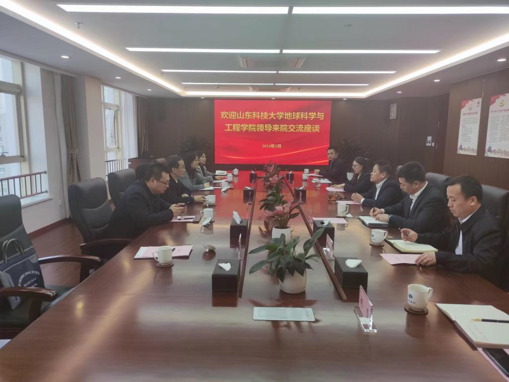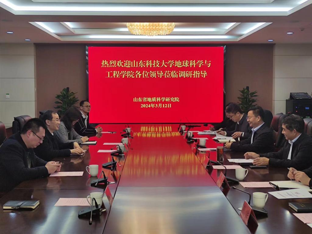 常象春一行分别与山东省地矿局物化探勘查院、山东黄河勘测设计研究院有限公司、山东省地质科学研究院等企事业单位进行了座谈交流。常象春详细介绍了公司的团队队伍、专业设置、人才培养、科学研究等情况,并就毕业生就业岗位招聘、学科发展方向、员工在单位的职业发展情况进行了详细调研。