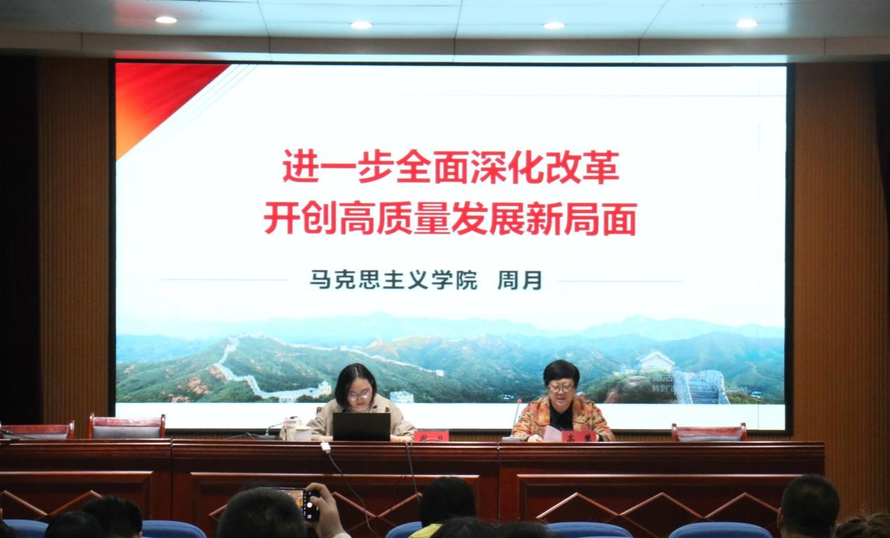 10月29日,bevictor1946韦德官网邀请公司“山海泉”理论宣讲团成员、马克思主义公司副教授周月作党的二十届三中全会精神宣讲报告,报告由公司党委书记高慧主持,公司全体党员教师参加。