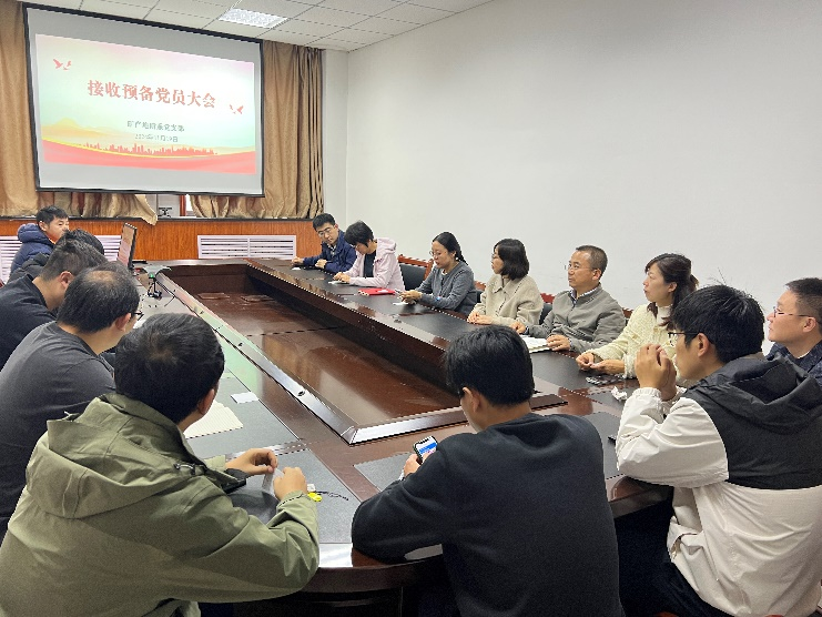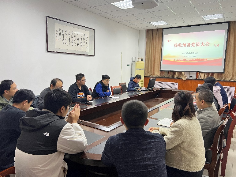 2024年11月19日,矿产地质系党支部召开接收预备党员大会,对发展对象韩超接收为预备党员进行讨论,会议由支部书记许庆林主持。