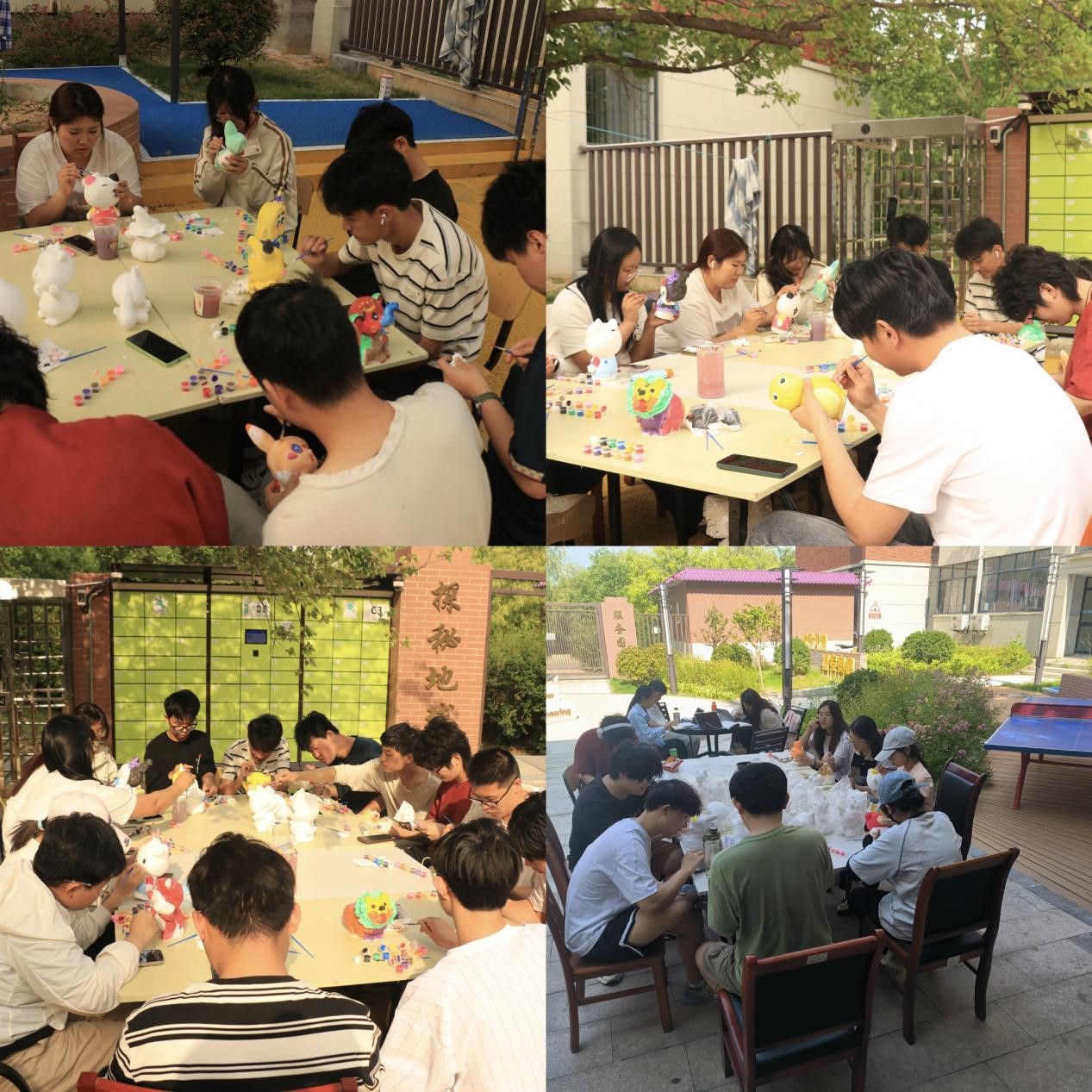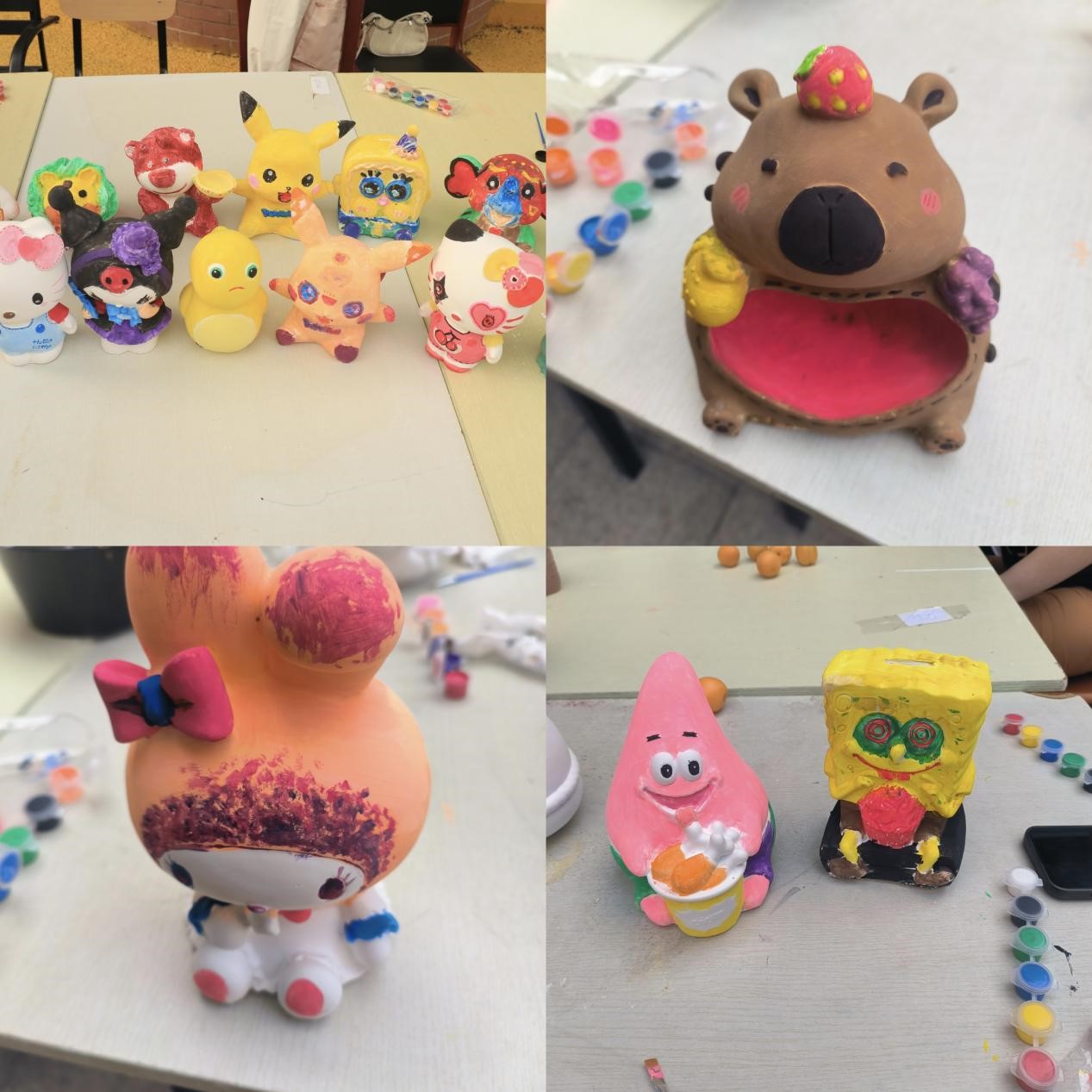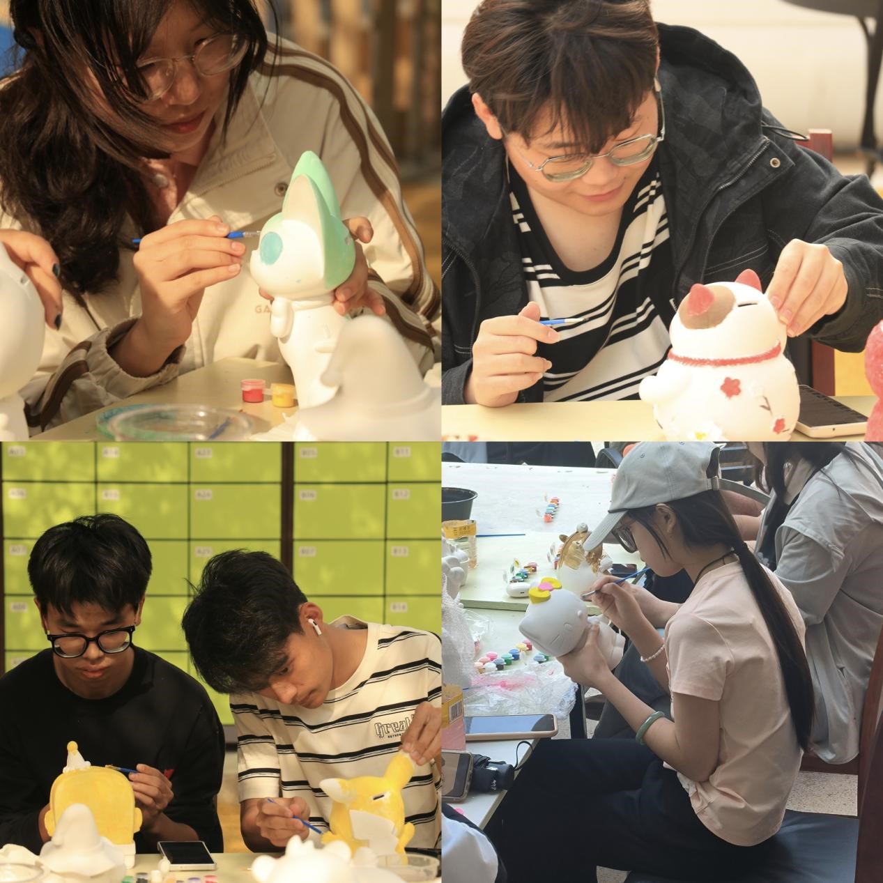 活动现场布置温馨有序,志愿者们提前将各式各样的石膏娃娃白胚整齐陈列。参与同学依照到场顺序选择心仪造型后,便投入充满创意的绘画创作中。活动现场氛围轻松愉悦,同学们或凝神勾勒,或挥洒色彩,展现出丰富的艺术想象力。活动志愿者全程提供贴心服务,既保障创作材料的充足供应,又适时给予专业指导,鼓励同学们突破常规、大胆创新。