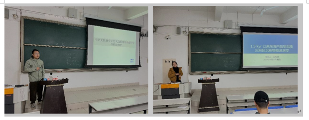 本次系列学术报告会围绕“变质作用与造山带演化”“岩浆作用与地幔过程”“成矿作用与成矿流体”“沉积环境与沉积盆地演化”四大专题展开。报告过程中,老师们结合科研实例,用通俗易懂的语言分享了各自的前沿学术研究成果。倪金龙以《鹊山变质核杂岩结构与演化》为题,深入解析了鹊山变质核杂岩的形成机制与金成矿的耦合关系;孔凡梅则聚焦胶–辽–吉带泥质孔兹岩中晶质石墨,讲述了晶质石墨成因机制,为相关领域研究提供了新视角;魏友卿与孟凡雪关于基性火山岩捕获锆石的地质意义和Kerguelen地幔柱EMII端元识别的研究,揭示了地球深部过程的关键信息;李如操通过多硫同位素示踪技术,详解了铁氧化物-铜-金矿床成矿物质来源与成矿过程;周振柱则深入分析了流体沸腾作用在成矿中的关键作用,为鲁西归来庄金矿成矿机制研究和未来勘探提供了理论支撑;随后,刘金庆、刘晓光、张丽萍、张凯棣四位老师,分别聚焦现代黄河水下三角洲演化、华北克拉通中新元古界地质特征、大沽河沉积物多环芳烃分布规律、东海内陆架泥质沉积区物源演变过程等研究方向,系统阐释了沉积地质学在环境演变解析、资源勘探实践等领域的应用价值。