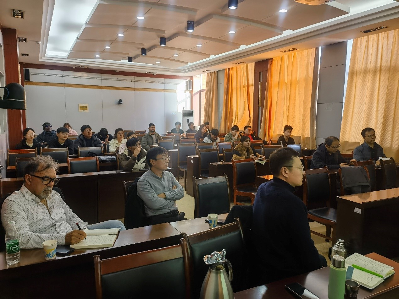 Ronald Steel教授首先围绕层序地层学的发展历程及最新进展,从层序地层学的起源、层序地层学的关键进展、长期海退体系域及短期海侵体系域的识别、三角洲驱动陆架生长的复杂性、基于地震剖面的体系域识别等五个方面进行了讲解;然后结合近50万年以来冰室海平面变化的特点,利用钻井和地震资料,介绍了层序内部不同体系域的差异性和识别标志,进一步为大家展示了“沉积物供给驱动型—陆架三角洲层序”的复杂性及最新研究成果。最后,与师生现场就有关学术问题进行了深入交流研讨。