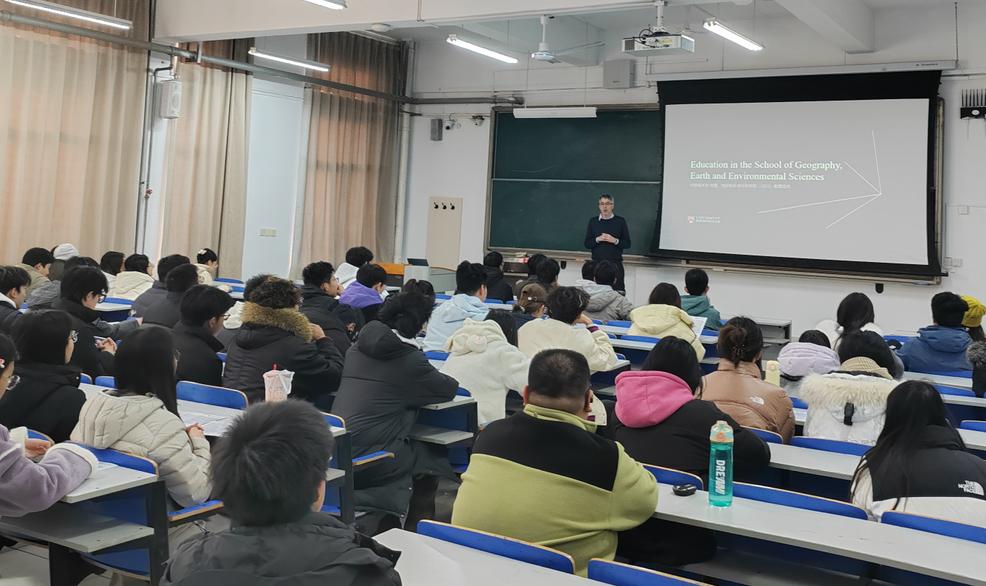 下午,代表团在J14教学楼与项目意向员工交流,代表团成员——伯大地理、地球与环境科学公司经理Nick Kettridge教授介绍了公司的概况,代表团成员——伯大地理、地球与环境科学公司国际事务副主任Simiao Sun副教授详细介绍了项目细节并解答了员工疑问。