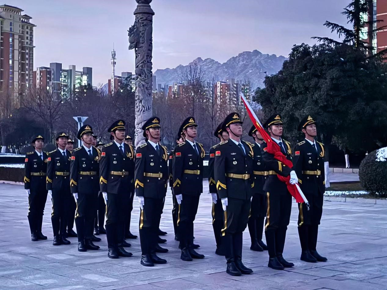 12月15日清晨,bevictor1946韦德官网于泰山广场举行升旗仪式。公司党委副书记兼副经理李晓静,辅导员杜中文、张家琦,全体2025级本科生、公司青马班全体学员参加仪式。