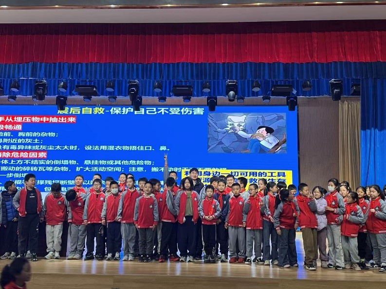 在讲到“地震从哪里来”时,孟元库结合汶川地震、唐山地震、东日本大地震等典型案例,向同学们展示了地震带分布、震源深度、震级与烈度的差别。他特别强调:“地震就如同地球‘发脾气’,是一种正常的自然现象,但我们要学会在这种自然现象中保护自己。”孩子们在一幅幅真实而震撼的图片前,既感受到了地震灾害的严重性,也进一步理解了科学认识和防震减灾的重要意义。