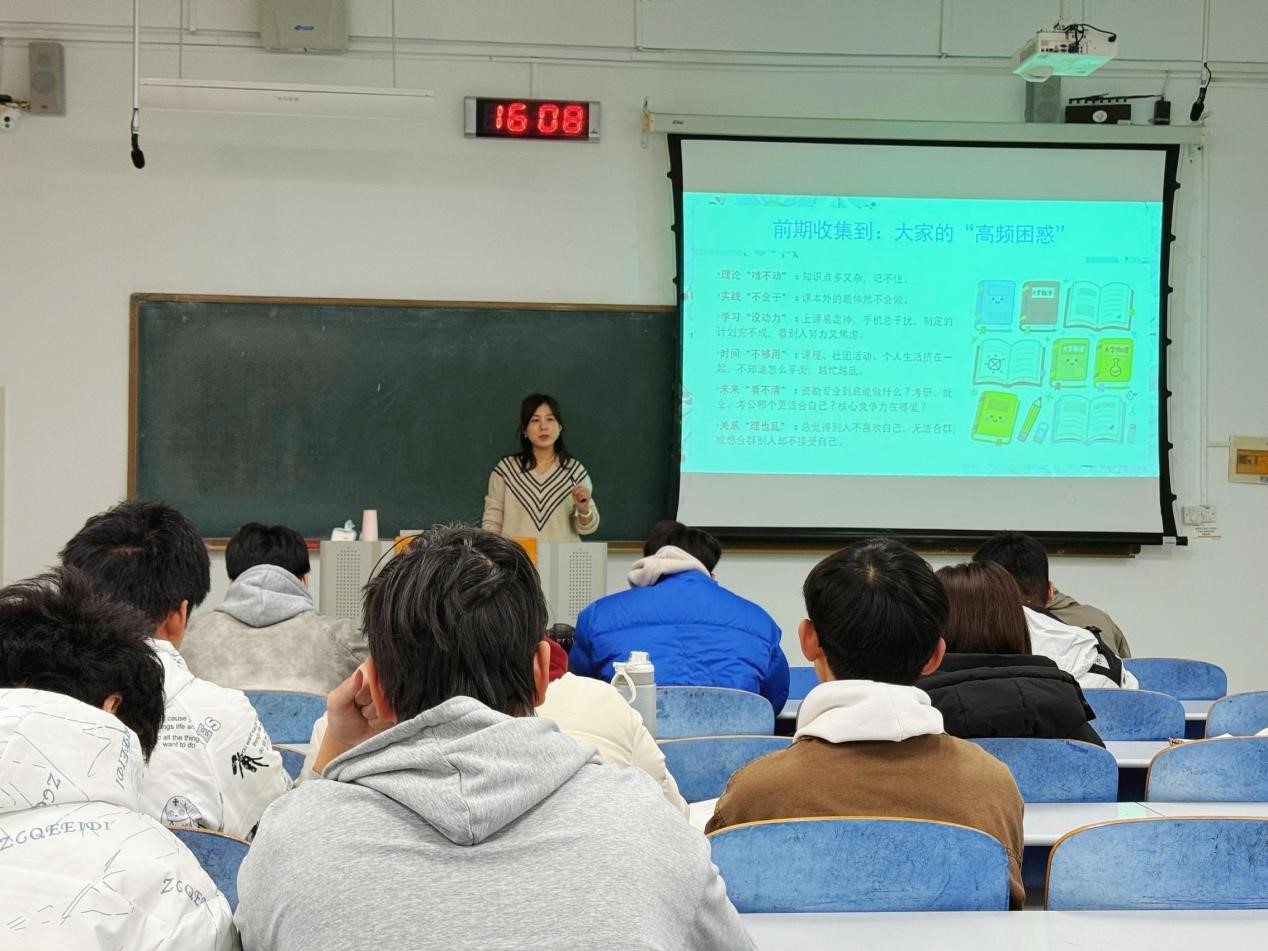 2025级1班班主任辛未以“勤学笃行・明辨方向・共建优良学风”为主题,围绕学风班风建设的重要性、班级现有问题,客观分析了部分同学在学习动力、学习态度和学习方法等方面存在的不足,并就课程学习难度、学习方法选择、时间管理及学业规划等问题做了详细讲解;同时针对不同学习状况同学进行具体指导,开展一对一互动交流,帮助学习暂时落后的同学明确改进方向、增强信心,引导学习表现突出的同学发挥示范带动作用,鼓励同学们互帮互学、共同进步。