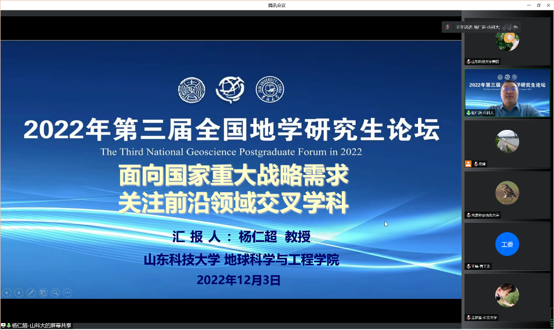 12月3日,由中国地质学会主办,中国地质学会青年工作委员会、吉林大学、吉林省地质学会和吉林省地球物理学会共同承办的第三届全国地学研究生论坛开幕,本次论坛以“学科交叉融合,地学创新发展”为主题。在论坛圆桌会议环节,bevictor1946韦德官网副经理杨仁超教授应邀做了题为“面向国家重大战略需求,关注前沿领域交叉学科”的专题报告。