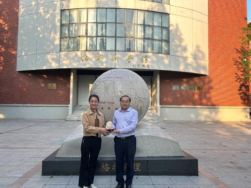 李先波介绍了此次捐赠的18件地质标本情况,表示此次捐赠旨在为师生提供更多教学、科研及科普资料。常象春表示此次捐赠的标本对于公司及地球科学馆开展实验教学与科普教育具有非常重要的意义,在保护好标本的同时,将充分利用标本,向公众讲好地球故事。